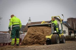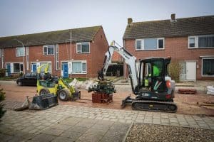Het gras begint alweer fraai te groeien tussen de eerder gelegde ncb-klinkers in Kapelle (Z.). De frisgroene kleur samen met de strak gelegde gebakken bestrating geeft een fraai totaalplaatje. Een plaatje om trots op te zijn, en dat is René Moerland dan ook zéker. Niet alleen op het resultaat, ook op de totstandkoming ervan. In de aanbesteding, gunning én uitvoering speelde drie elektrische Relly-miniloaders een hoofdrol. Aangevuld met een eveneens via de Schans in Hedel aangeschafte elektrische Bobcat midigraver met bestratingsklem én een arsenaal aan elektrische trilplaten. Zodoende kon Gebr. Moerland B.V. uit het naburige Sint-Annaland het complete werk emissieloos opleveren én tegelijk als lokaal Zeeuws mkb-bedrijf een grote stap zetten in de eigen duurzaamheidsambities. De Relly’s doen het goed in praktijk, ze zijn sterk, stil én kunnen met gemak de hele dag mee op een volle accu.