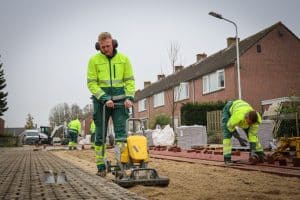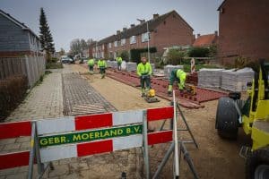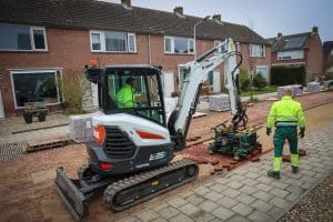 Op dit werk kwamen vier ontwikkelingen precies tegelijk samen, zo analyseert eigenaar René Moerland van het familiebedrijf terugblikkend. “Je hebt natuurlijk de trend naar elektrificatie, we stonden zelf voor de vervanging van een paar bestaande dieselmachines, toen kwam de gunning van dit werk én tot slot hadden we zelf al onze eigen toekomstvisie waarin we een belangrijke rol zien voor elektrisch werkmaterieel.” Zo kwam het vorig jaar tot een flinke investering en bestelde Moerland een Relly 1.3E en tweemaal de Relly 1.8E. De machines draaien inmiddels dus al even in praktijk en bevallen goed, legt Moerland uit. Intussen rijdt de compacte Relly 1.3E een volle pak klinkers naar de Bobcat E35E, die ze elektrisch op de plek legt met een bestratingsklem. “We kunnen gemakkelijk een werkdag volmaken op één acculading.” Dat geldt ook voor de Relly 1.8E die veel rijdt en wat zwaarder grondwerk doet. Waar iedereen beperkingen ziet in het opladen tracht Moerland dat met Zeeuwse nuchterheid op te lossen. Hij zoekt de samenwerking met omwonenden die een wat zwaardere stroomaansluiting thuis hebben liggen. “Wij laten dan een tussenmeter plaatsen en betalen een opslag op de stroomprijs zodat diegene er ook iets aan verdient. Ook laadden we zo al bij een Kerk of buurthuis en vloeit het geld terug naar de gemeenschap. Het vergroot de betrokkenheid van burgers bij het werk en wij kunnen de machines opladen zonder een openbare laadpaal bezet te houden.”. Het typeert de aanpak van Moerland, die fatsoen en uitstraling hoog in het vaandel heeft staan. “Bij ons zul je geen capuchons en blikken Redbull op het werk zien. Wij zijn een familiebedrijf in de traditionele grond- weg en waterbouw. We doen voornamelijk herinrichtingen van binnenstedelijk gebied.” Zodra het specialistisch wordt, qua omgeving, straatwerk, riolering of anderszins dan loopt Moerland warm. Het bedrijf neemt zulke projecten aan en voert ze uit voor hoofdzakelijk gemeentes en soms ook andere instanties of bedrijven. Het werkgebied is de driehoek Roosendaal, Renésse, Domburg, Dordrecht. Voor vrijwel alle gemeentes boven de Westerschelde verricht Moerland werk met een vast team van 25 eigen medewerkers in de uitvoering.